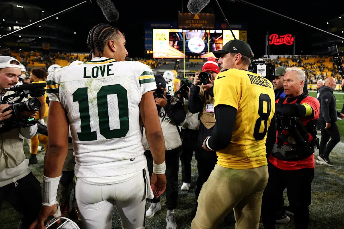 Rodgers berhenti selama beberapa detik sebelum menandatangani jersey untuk quarterback Green Bay Packers Jordan Love. Kekecewaan melintas di wajahnya Steelers kalah dari Packers 35-25Namun hal itu tidak akan menunda pertukaran jersey pendahulu-penerusnya.