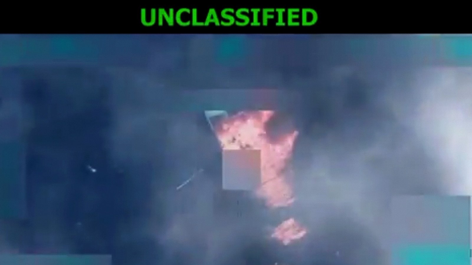Dalam tangkapan layar dari video yang diposting di media sosial ini, sebuah perahu ditampilkan setelah terkena serangan kinetik di Samudera Pasifik bagian timur.