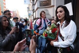 Jarod Boen dari West Ham United merayakan tangan kirinya yang terangkat menunjuk ke atas.
